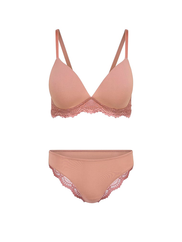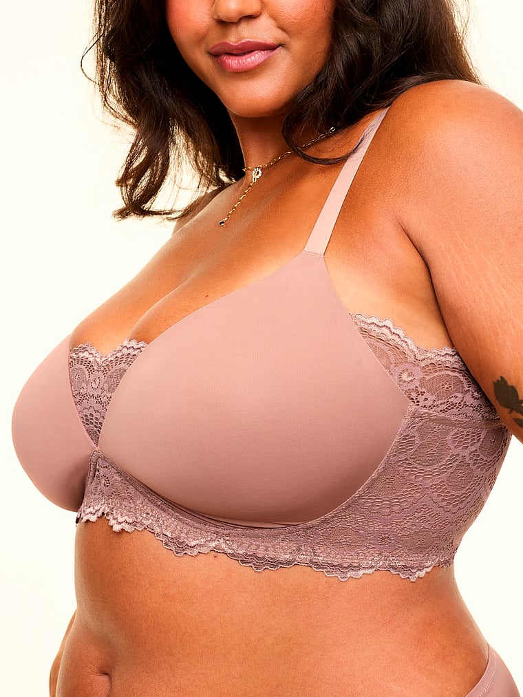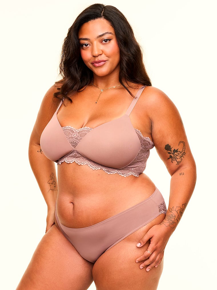 Underwire-free support? Yes, please. This wireless style offers all-day comfort with contour plunge cups, lace wings for underarm smoothing, and a fully adjustable fit.