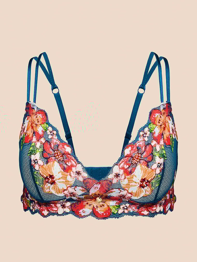 A wirefree design crafted with comfortable lace and mesh fabric for a freeing, flexible fit.