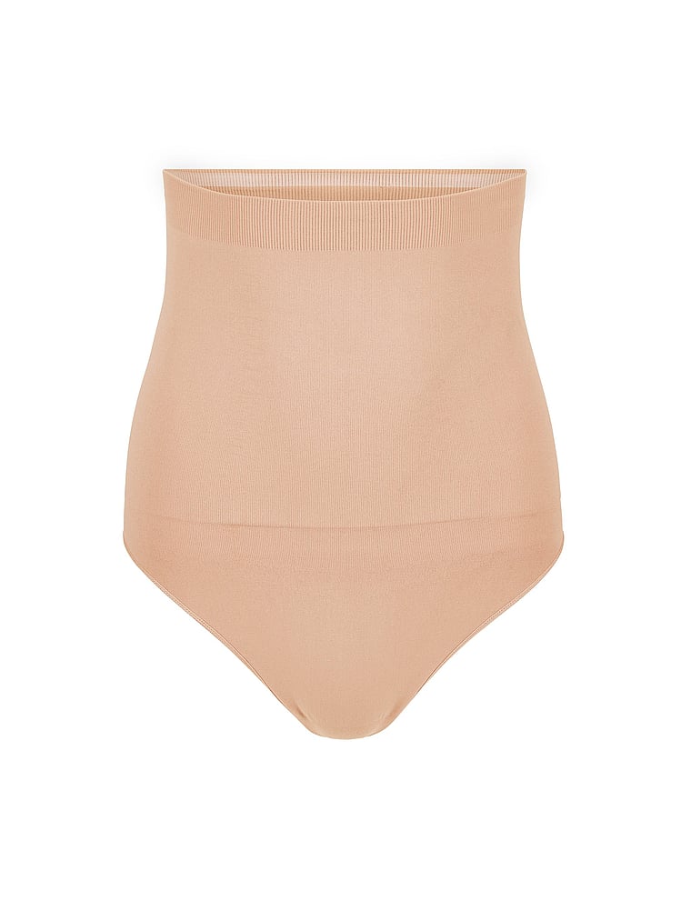 Stay comfortable and shapely all day. This high-waisted thong is made of a seamless knit with smoothing. It also has an inner silicone waistband to prevent rolling down, so you have a smooth, comfortable fit all day.