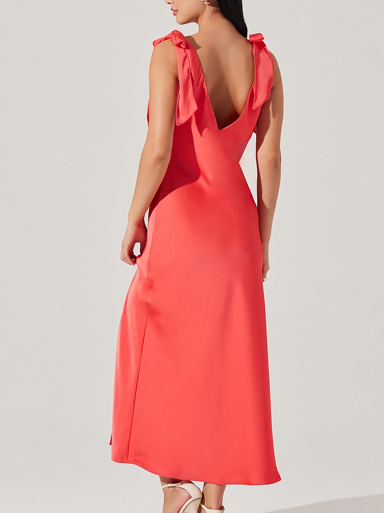 Adjustable shoulder ties add a romantic finish to this satiny slip Dress that drapes effortlessly across your body for an ultra-flattering—and glamorous—fit.