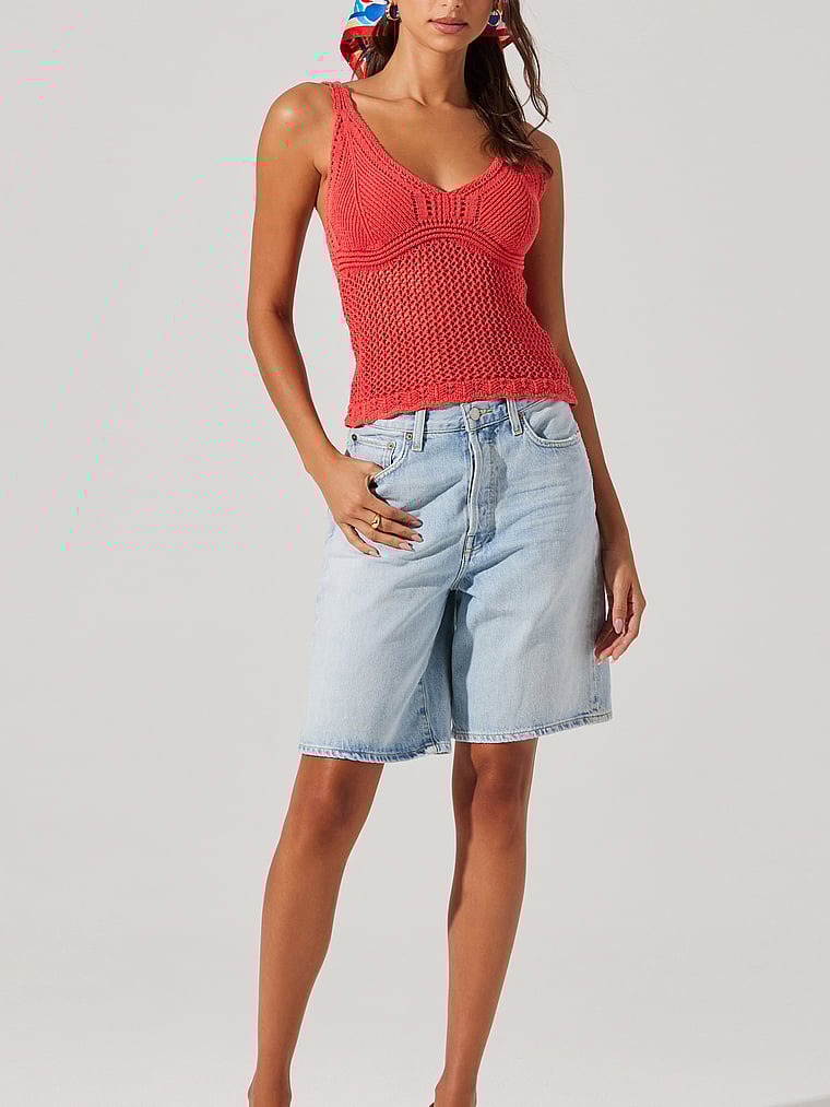 Crocheted from a high-stretch cotton, this boardwalk-ready Tank is finished with a flattering V-neckline and sweet, scalloped trims. Wear it over your Bikini or with your favorite cut-offs for a laid-back summer look.