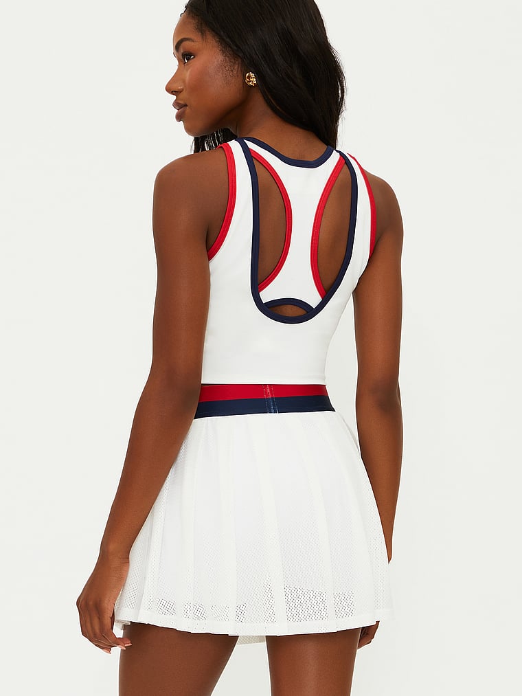 With a fun layer detail and bright contrast trim, this racerback Top looks good on and off the court.