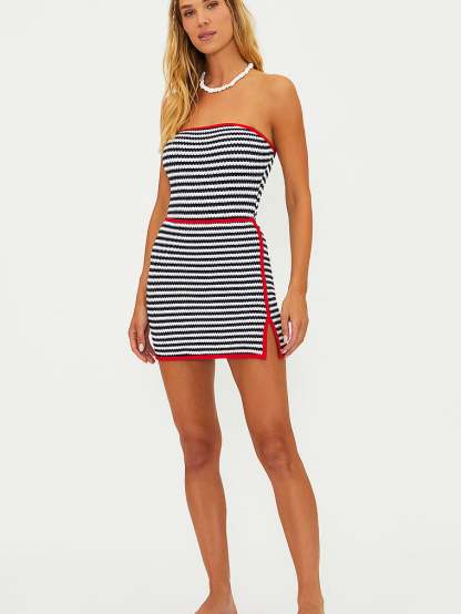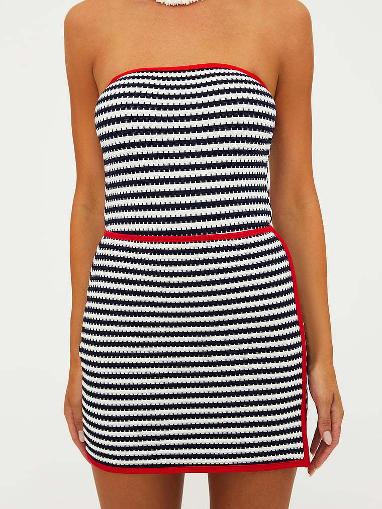 Ready to hit the beach, pool, or town, this pull-on Skirt has a fun striped motif and a side slit.