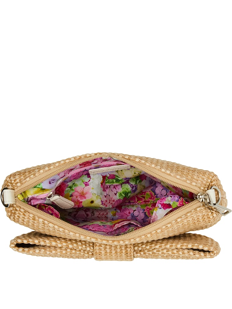 Betsey Johnson Bow Top-Zip Straw Bag