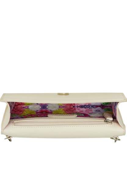 This bag is in full bloom! It can be carried as a clutch, or worn as a shoulder bag with the removable chain strap. It features 3D flower details with faux pearls. Carry your it-girl essentials like phone, keys, credit card, and lipgloss.