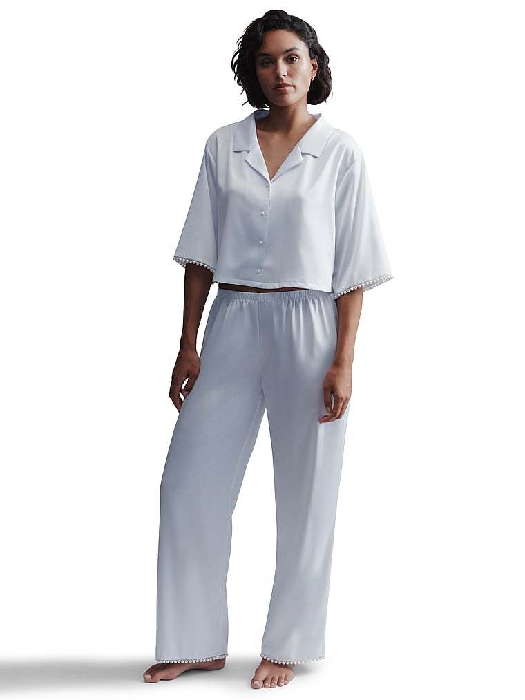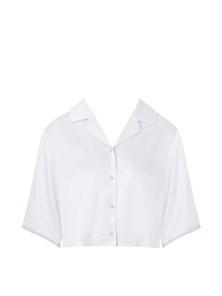 Meet the ultimate elevated nightwear piece that you can take out, too. This luxe satin Shirt is crafted with pearlescent bead trim, a cropped length, and a timeless design—making it perfect for brides or anyone looking to add a chic touch to their loungewear.