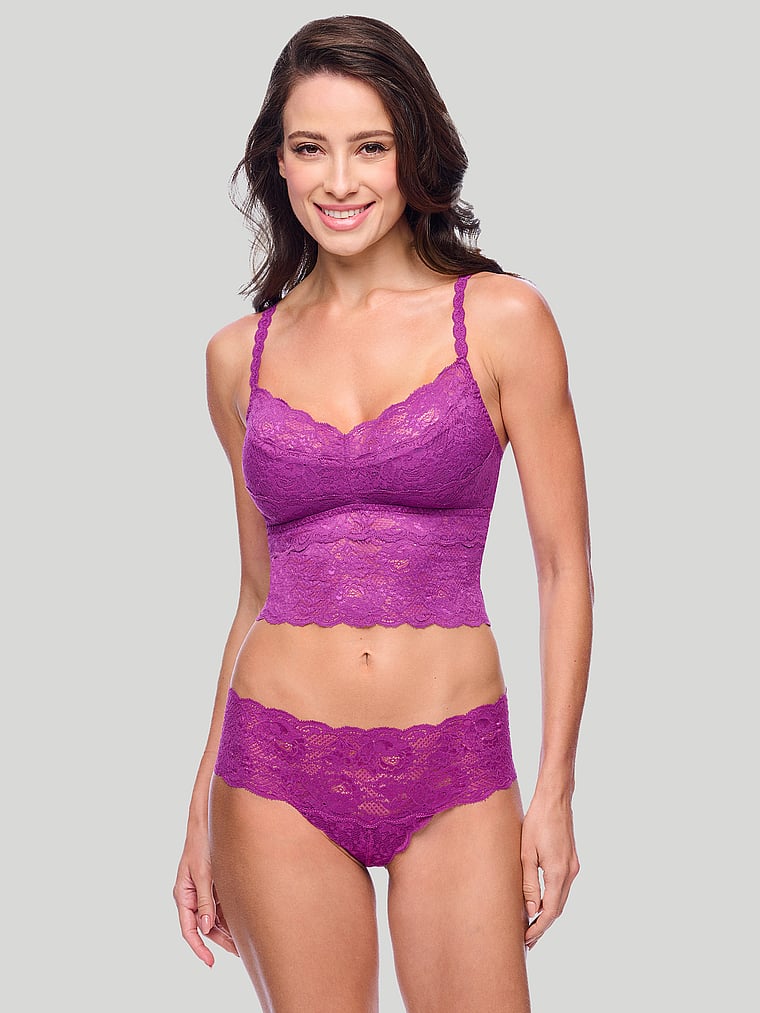 Soft and stretchy lace hugs your curves, while adjustable straps allow you to find your perfect fit while wearing this lightweight and comfortable style. The finishing touch? A scalloped hem for a flirty feel.