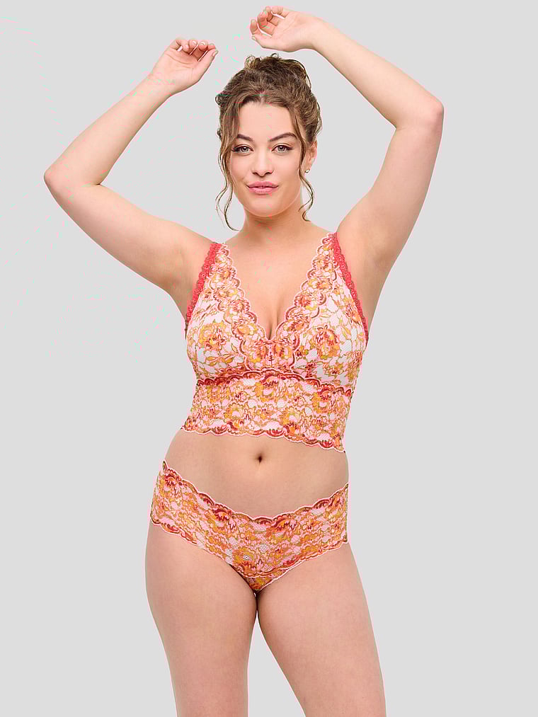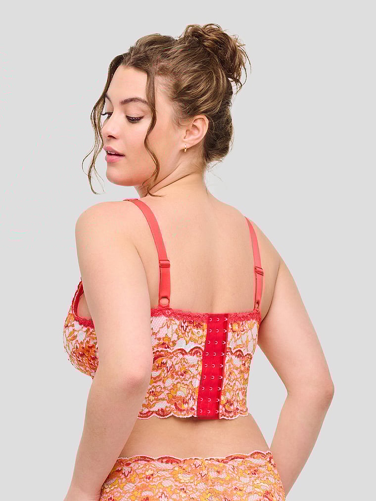 A lace-trimmed, longline Bralette gets a supportive update with power mesh. Non-padded cups and a plunging neckline add drama to the look.
