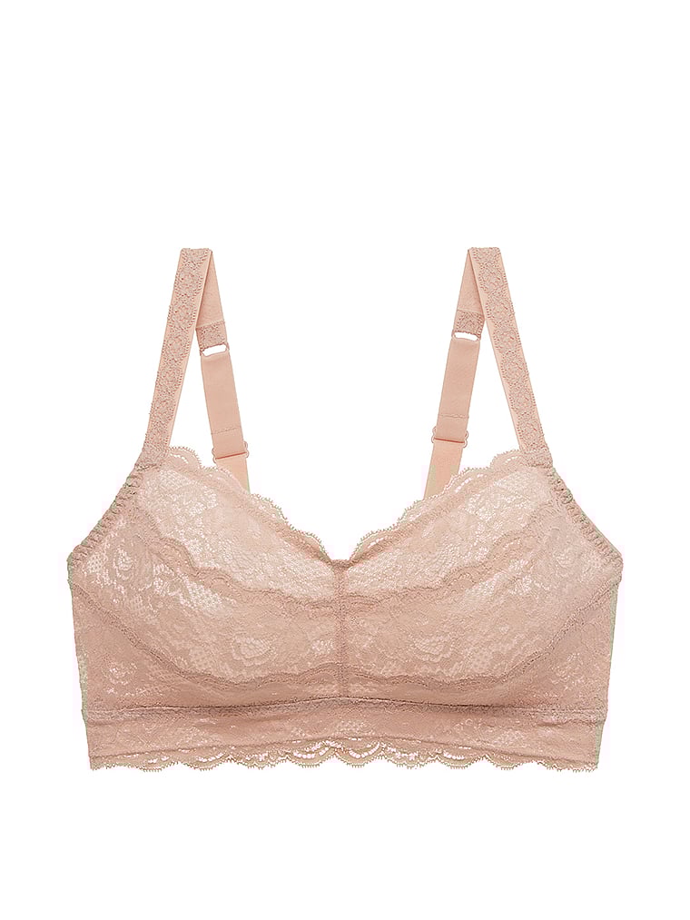 Comfortable, wireless support and an easy pull-on design get a romantic lift with lace trim. Power mesh and adjustable straps add support.