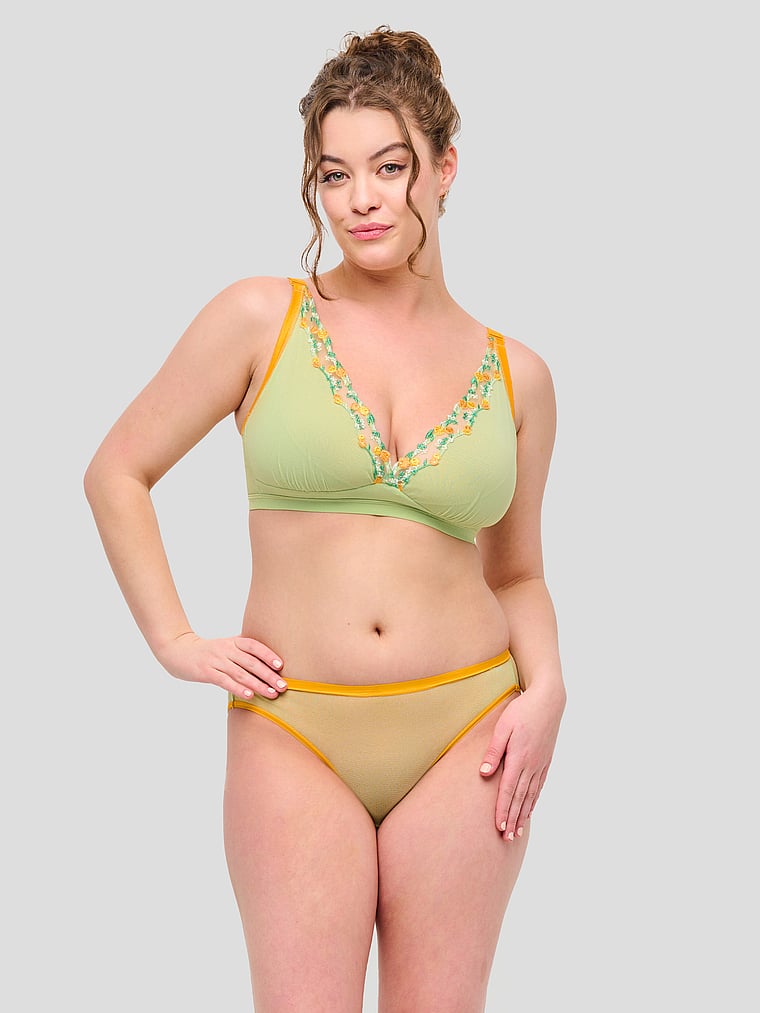 Inspired by the romantic citrus gardens of Italy, this glamorous style is crafted from a lightweight sheer mesh that lays smooth for a comfortable fit. Finished with delicate embroidery and contrasting elastic for an extra pop of color. Make it a match with the Soire Limeneto High waist Bikini Panty.