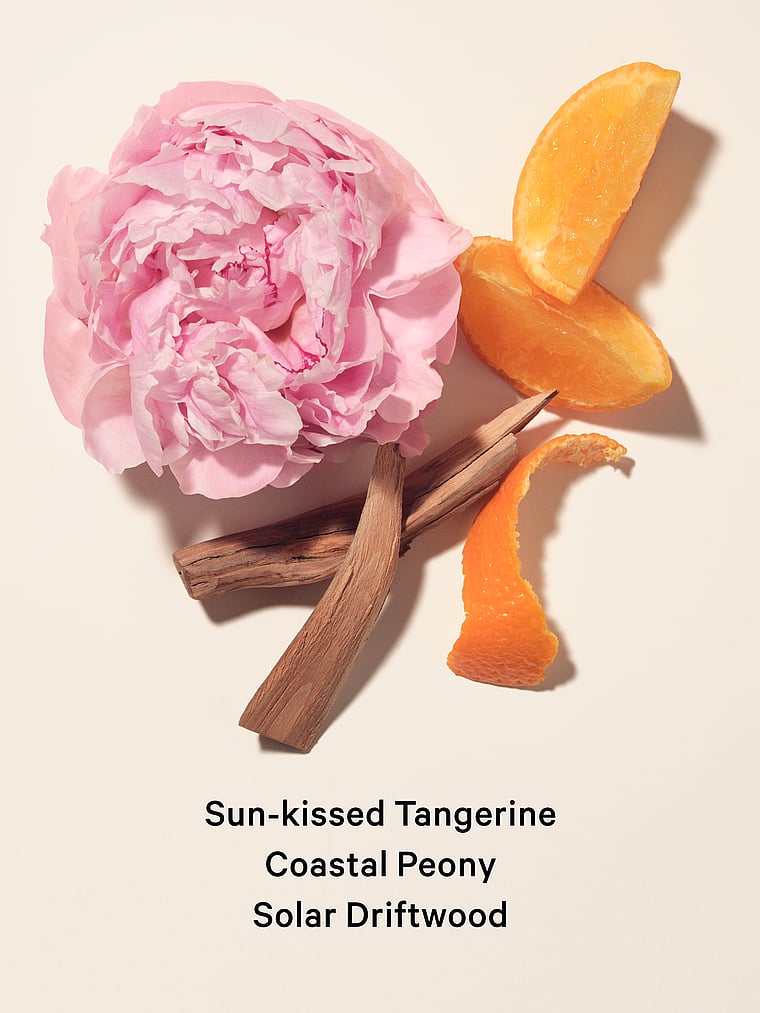 - Notes: sun-kissed tangerine, coastal peony, solar driftwood