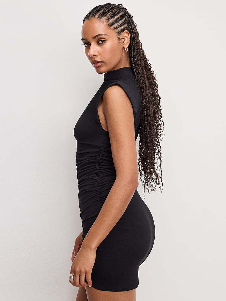 Good American Super Stretch Jersey Mock Neck Mini Dress