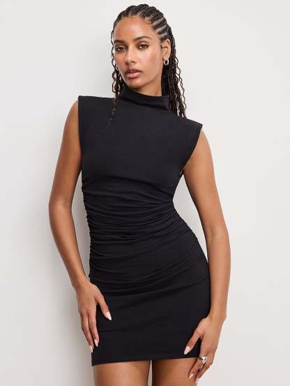 With a mock neck and super-stretch fabric, this easy, bodycon Dress is effortlessly cool and endlessly versatile.