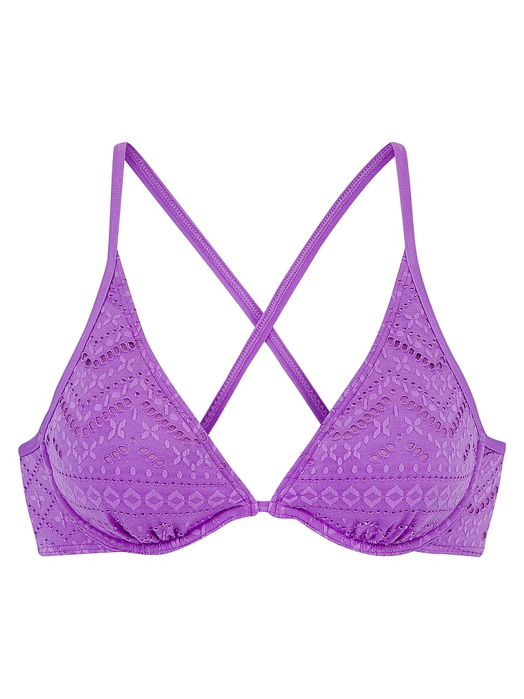 A knit crochet finish adds style to this underwire Bikini Top while removable soft cups and adjustable ties ensure the perfect fit.