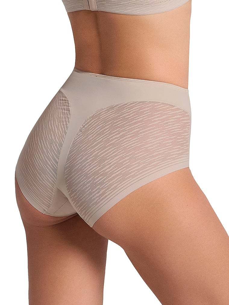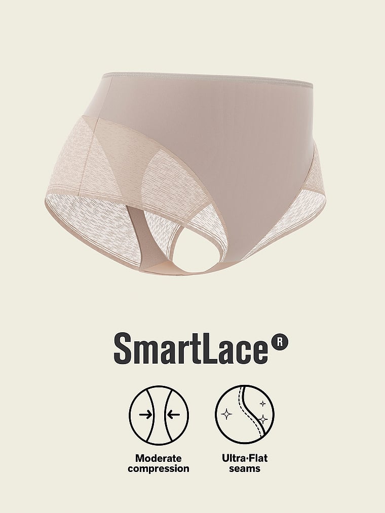 This brilliant shaper panty combines sexy style and shaping power. It’s made of DuraFit® for moderate compression, flattening the lower tummy. Sheer SmartLace® in the bottom offers a cute look while reducing the appearance of cellulite. The thong effect in the back offers a light butt-lifting effect. It hits right at the belly button for a streamlining effect, and it has laser-cut leg bands to go invisible under clothes. By Leonisa.