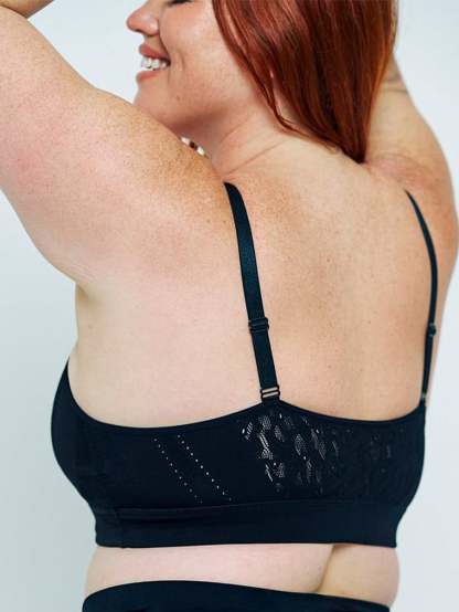This supportive, scoop-neck style has been engineered for smaller bands and D+ sizes. Seamless cups are embellished with 360 Degree Performance Stretch Lace that is smooth against skin, making it your go-to for everyday or the gym. By MIND