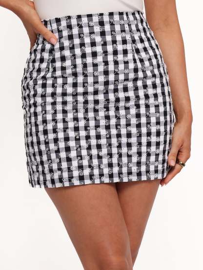 A playful gingham print nods to timeless summer style, while intricate floral embroidery adds a wistful finish to this sweet mini Skirt.