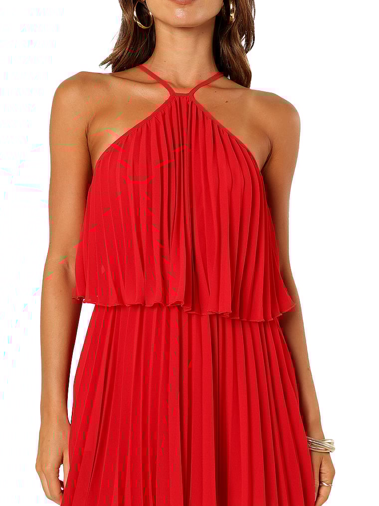 Petal & Pup Gia Pleated Halterneck Mini Dress