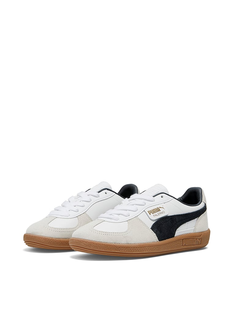 A terrace legend returns: The Palermo. The silhouette debuted back in the early '80s, where it quickly became a staple. Like the original, the Palermo is complete with its signature tag at the upper, a T-toe construction, and, of course, the classic gum sole. This version has a leather base with a suede Formstrip and suede overlays.