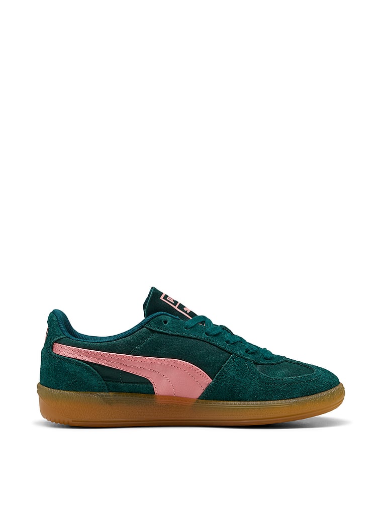 Straight from the archives, it’s the PUMA Palermo. This classic terrace shoe is revived today with its signature T-toe construction, plus extra-bold colorblocking and plush materials. Its design builds on PUMA’s heritage within football, while appealing to today’s sneakerheads and terrace fashion mavens. This football inspired execution features a satin base and formstrip, and suede overlays.
