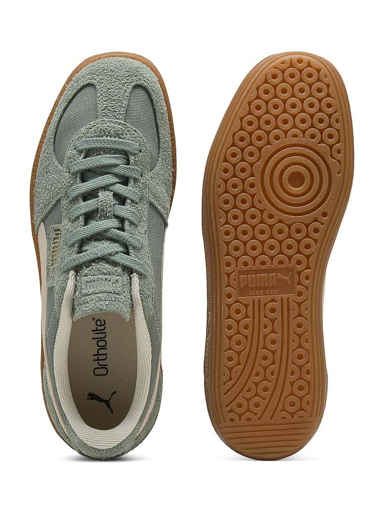 Straight from the archives, it's the PUMA Palermo. This classic terrace shoe debuted in the 80's and now, it's back for the fans. With its signature T-toe construction and classic gum sole, this version features a textile upper and suede overlays.