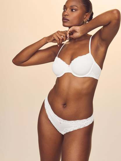 Crafted in a cool cotton blend with a subtle striped pattern, this Thong is trimmed all around with pretty lace and finished with a sweet, satin rosette.