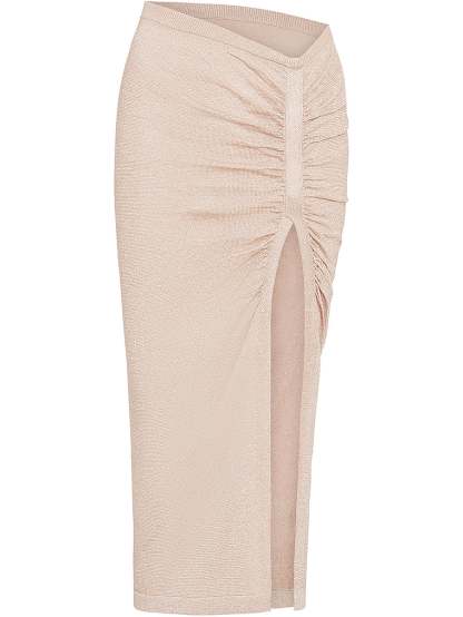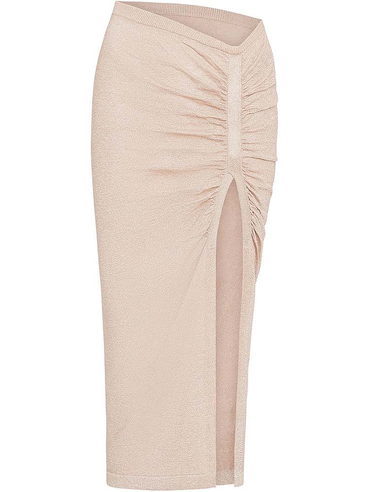 Pull-on this shimmering, resort-ready Skirt with a flattering V-shaped waistband for an instantly elevated Swim look. Ruched details and a side slit accentuate your curves. Match it with the Au Natural Top.