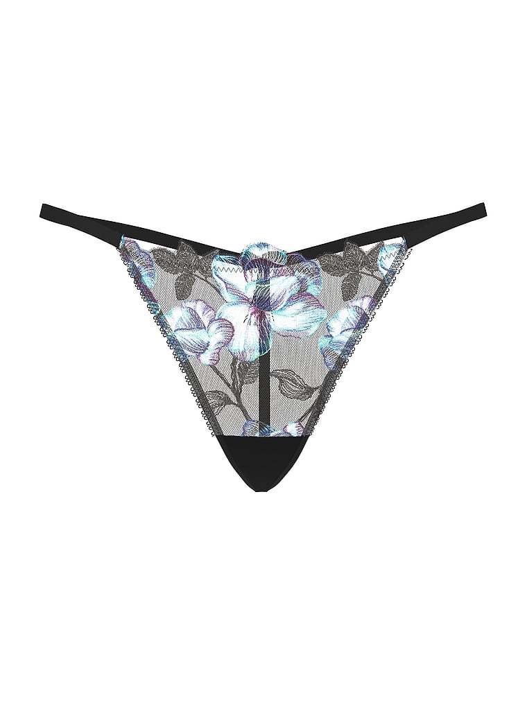 Richly hued, moody blooms are artfully embroidered on our little V-String Panty. A dainty tasseled bow finishes the design.