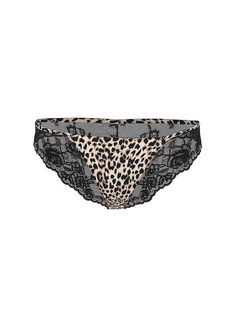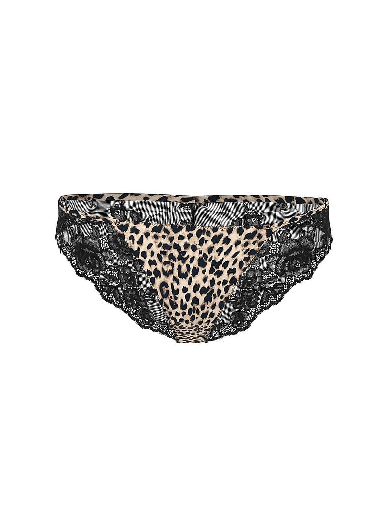 Stunning lace backs up this smooth, printed-satin pair, bringing a sexy rear view to the cheeky style.