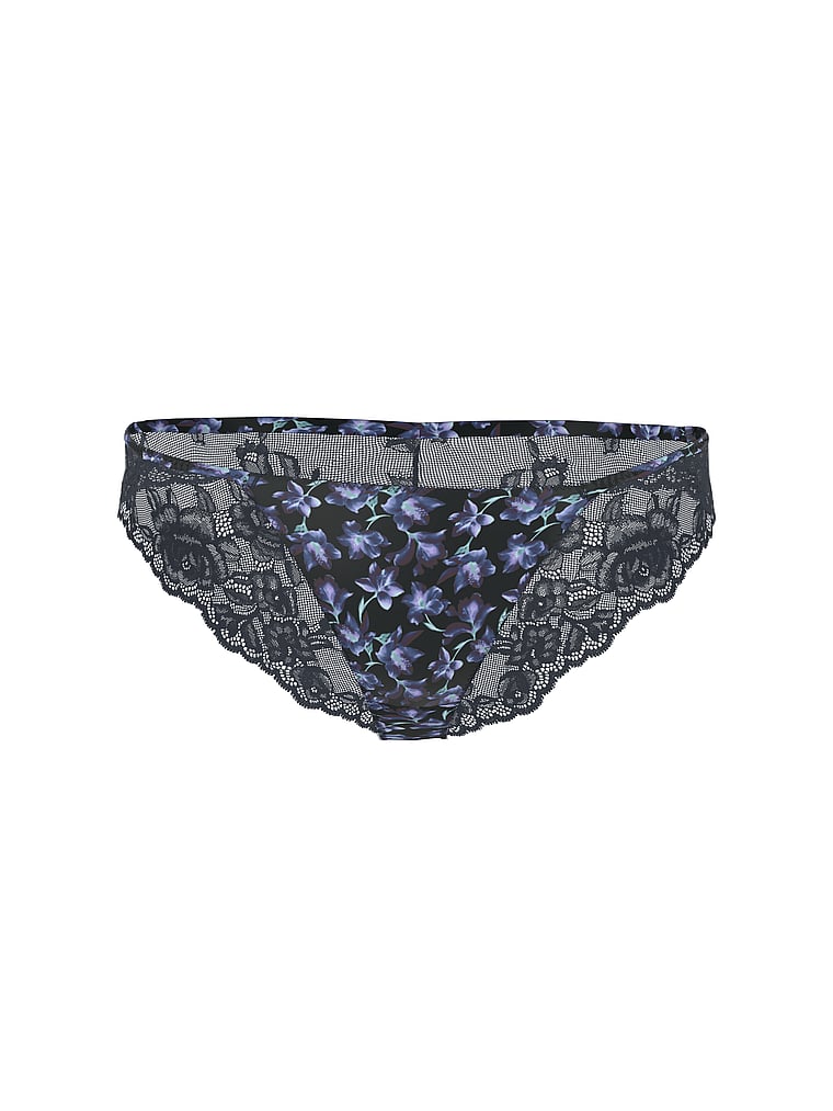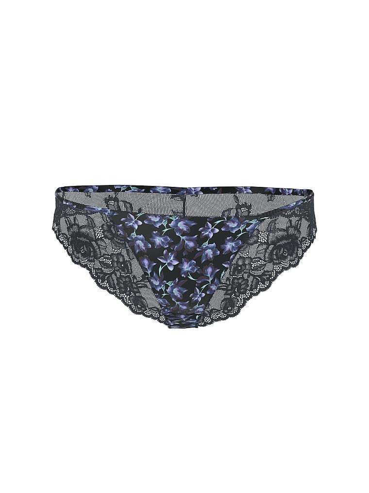 Stunning lace backs up this smooth, printed-satin pair, bringing a sexy rear view to the cheeky style.