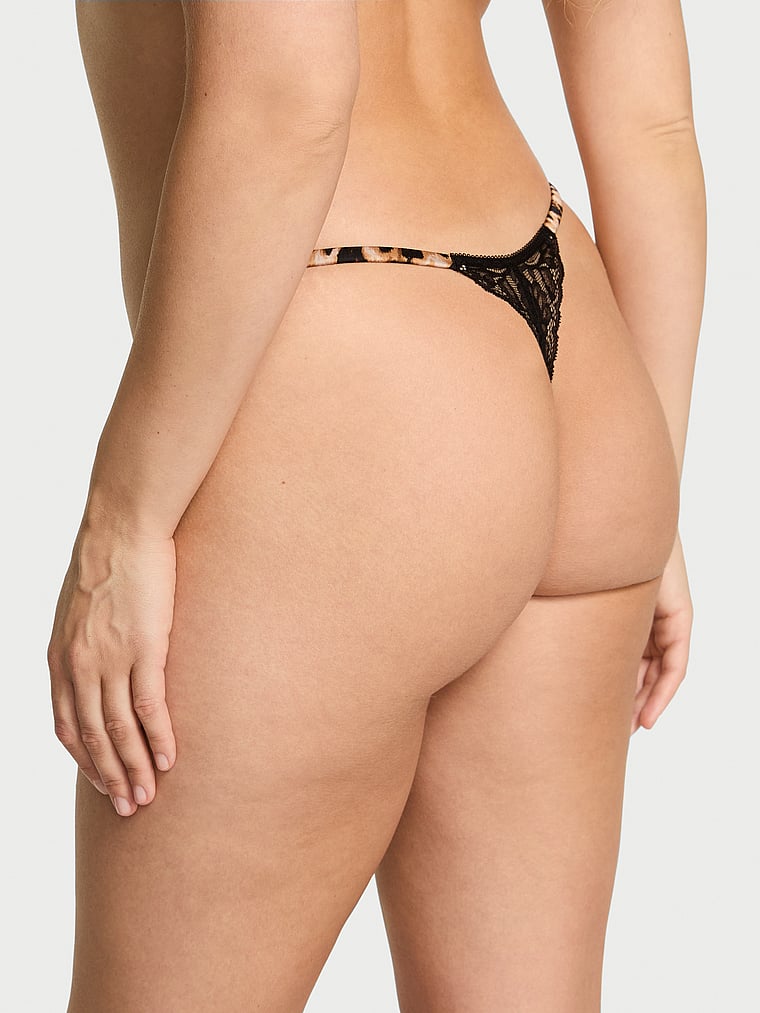 Stunning lace backs up this smooth, printed-satin pair, bringing a sexy rear view to the minimal style.