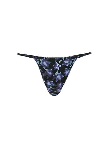 Stunning lace backs up this smooth, printed-satin pair, bringing a sexy rear view to the minimal style.