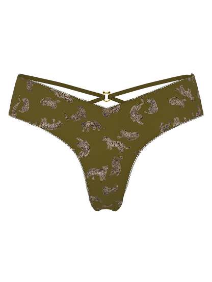 This silky Panty features a V-cut front and turns around to reveal strappy details and a dangling charm.