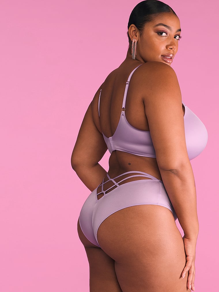 A V-cut front and strappy details on the back of this silky-smooth pair add unexpected, sexy touches.