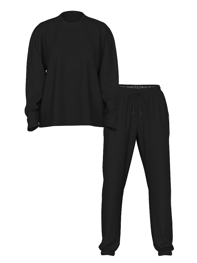 Discover an all-cotton essential Set you'll wonder how you lived without. Our logo details the pocket of the soft, long-sleeved Top, while the matching jogger-style Pants feature pockets on the sides and in back.