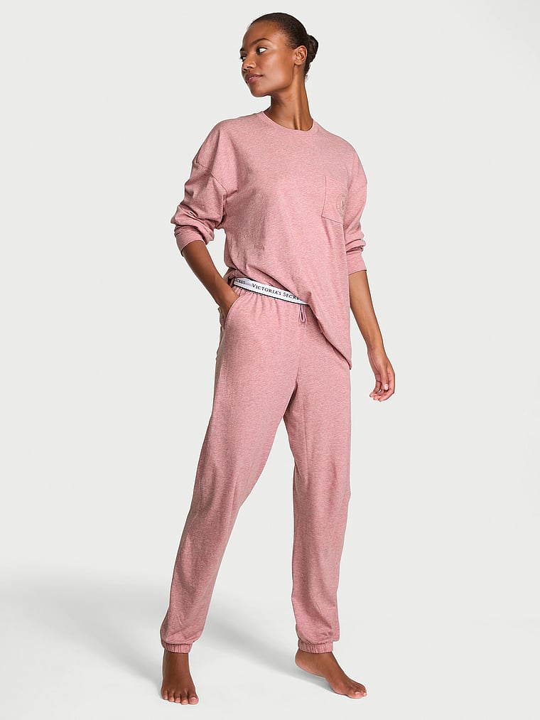 Discover an all-cotton essential Set you'll wonder how you lived without. Our logo details the pocket of the soft, long-sleeved Top, while the matching jogger-style Pants feature pockets on the sides and in back.