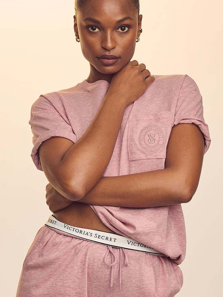 Discover an all-cotton essential Set you'll wonder how you lived without. On top, a soft, short-sleeved Tee, while the matching drawstring Shorts feature a foldover waistband with our signature logo elastic.