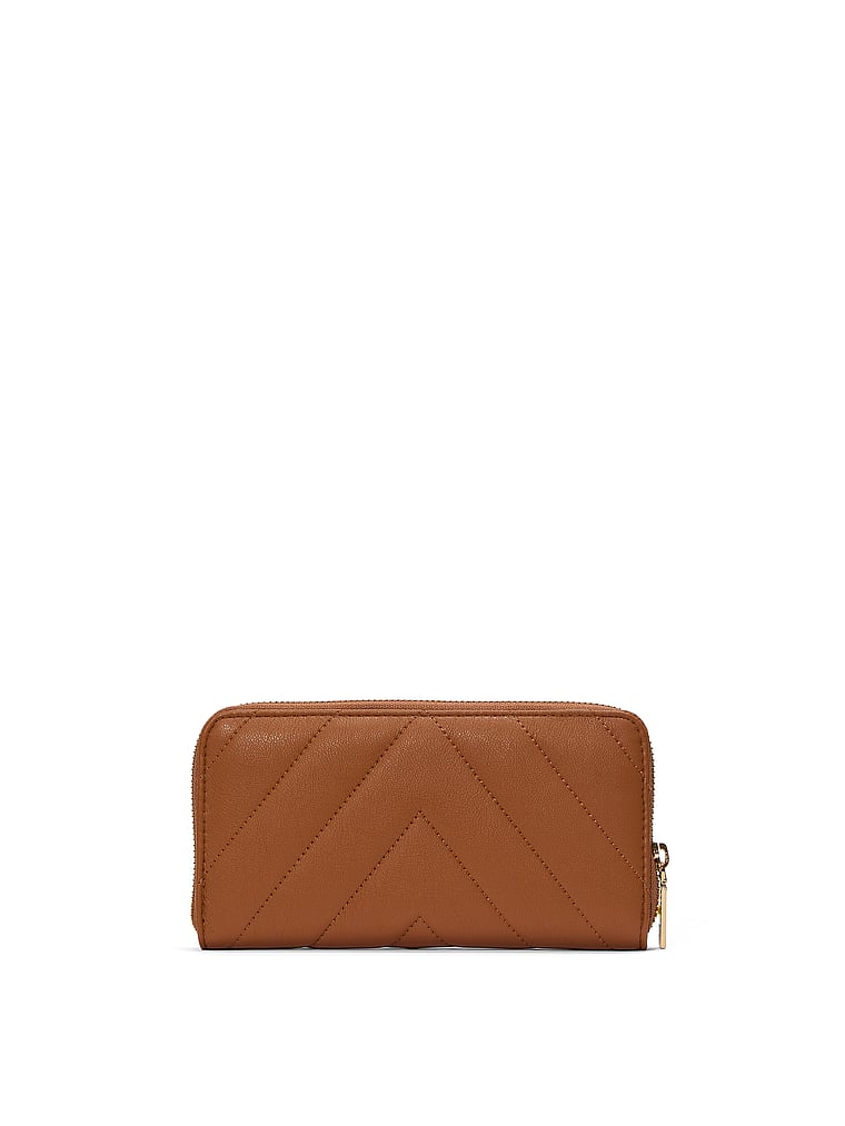 An allover V-quilt pattern and VS logo hardware define this sleek wallet. A wrap-around zip and plenty of interior pockets keep everything contained and organized.