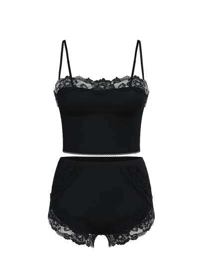 Delicate lace accents buttery modal fabric on this body-hugging set, complete with a cropped cami and matching high-waisted shorts.