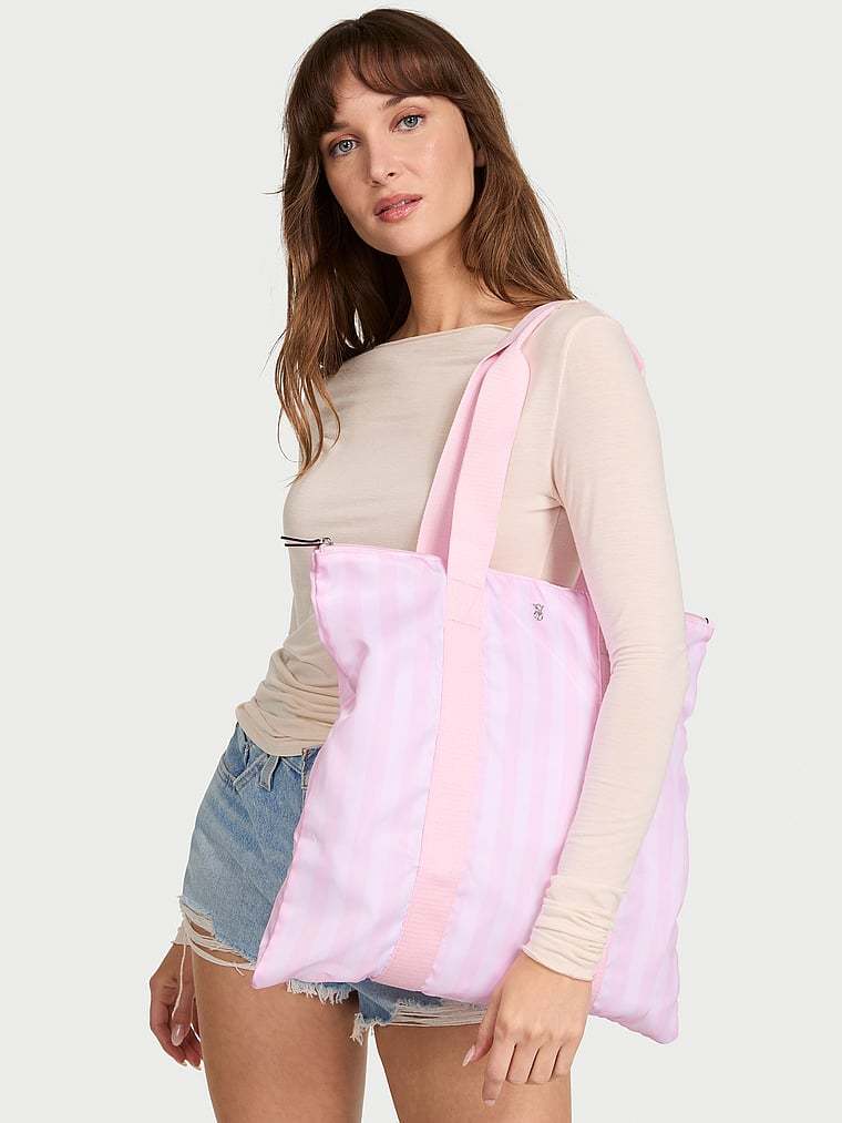 Meet your new functional, travel-friendly tote. This Packable Tote bag is spacious enough for all your getaway necessities. The lightweight material neatly folds into a packable pouch to save space on the go.