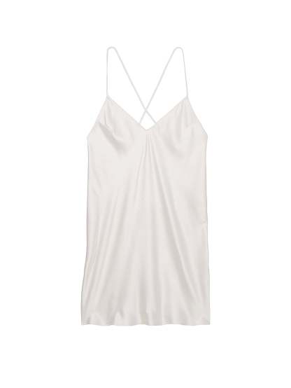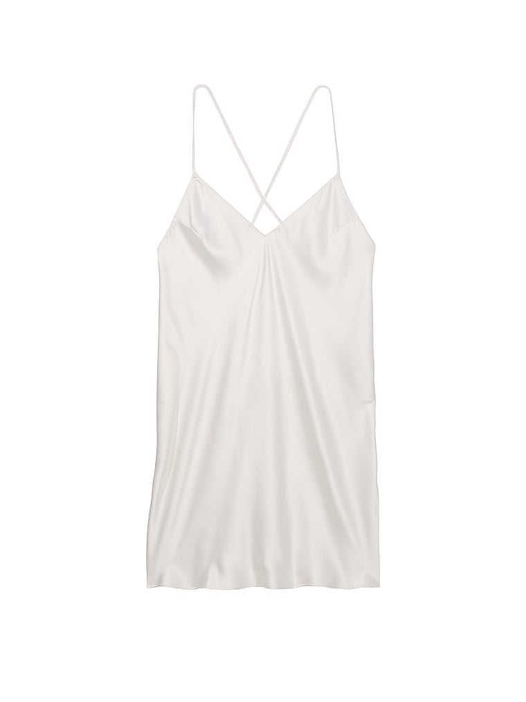 This glossy, V-neck style turns around to reveal a sexy low-cut, open back finished with delicate crossed straps.