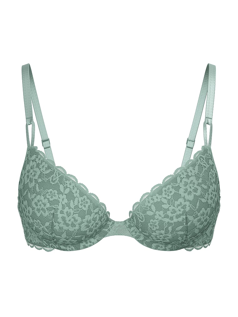 Wear-testers agree: Our newest lace is softer and stretchier than ever for ultimate comfort—it's also exceptionally pretty, featuring knit-in logo details. Feel the difference for yourself with this sexy Demi Bra, complete with light lining for natural-looking shape and coverage..