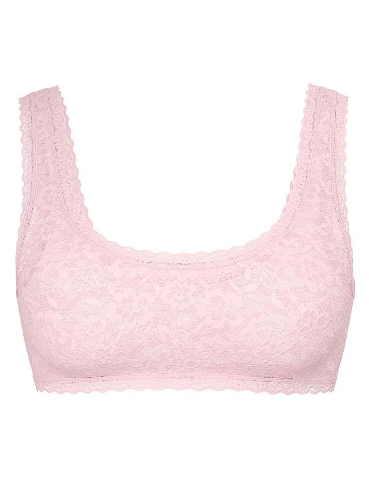 Wear-testers agree: Our newest lace is softer and stretchier than ever for ultimate comfort—it's also exceptionally pretty, featuring knit-in logo details. Feel the difference for yourself with this wireless, scoop-neck Bralette.