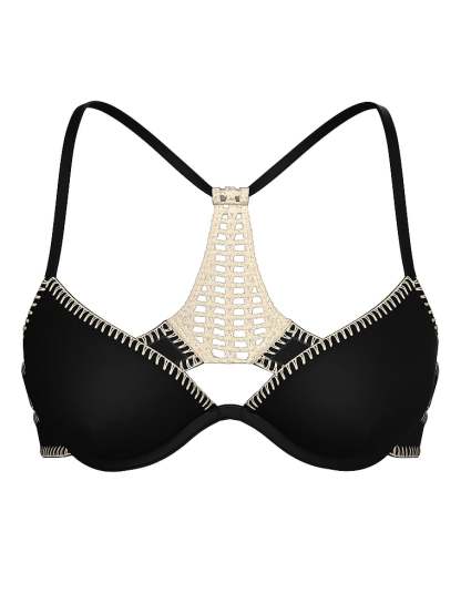 Opposites attract. Smooth and sporty neoprene meets its match with boho-chic crochetwork and blanket-stitching details for a modern-vintage spin on swim. You'll be a surfside standout in this sexy, Push-Up Top.