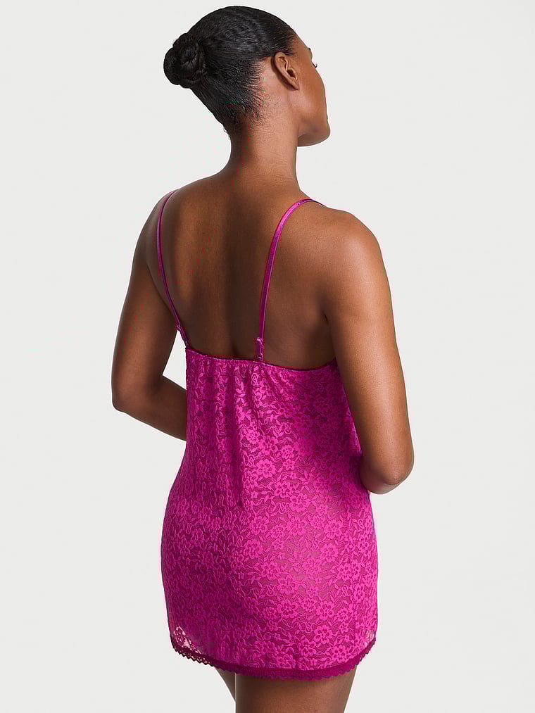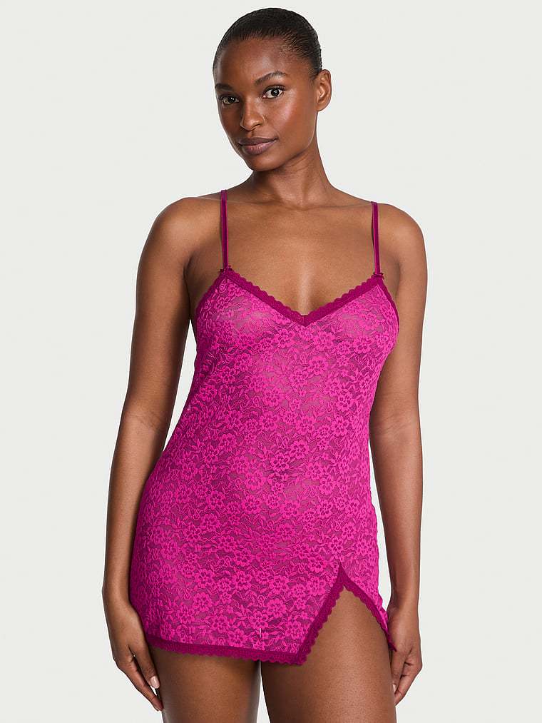 Sweet and sexy merge in this body-skimming Slip, cut from our softest-and-stretchiest lace yet. Contrasting floral lace details the neckline, hem, and side slit on this sweet mini style.
