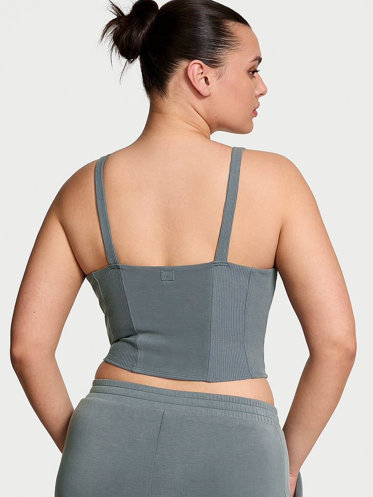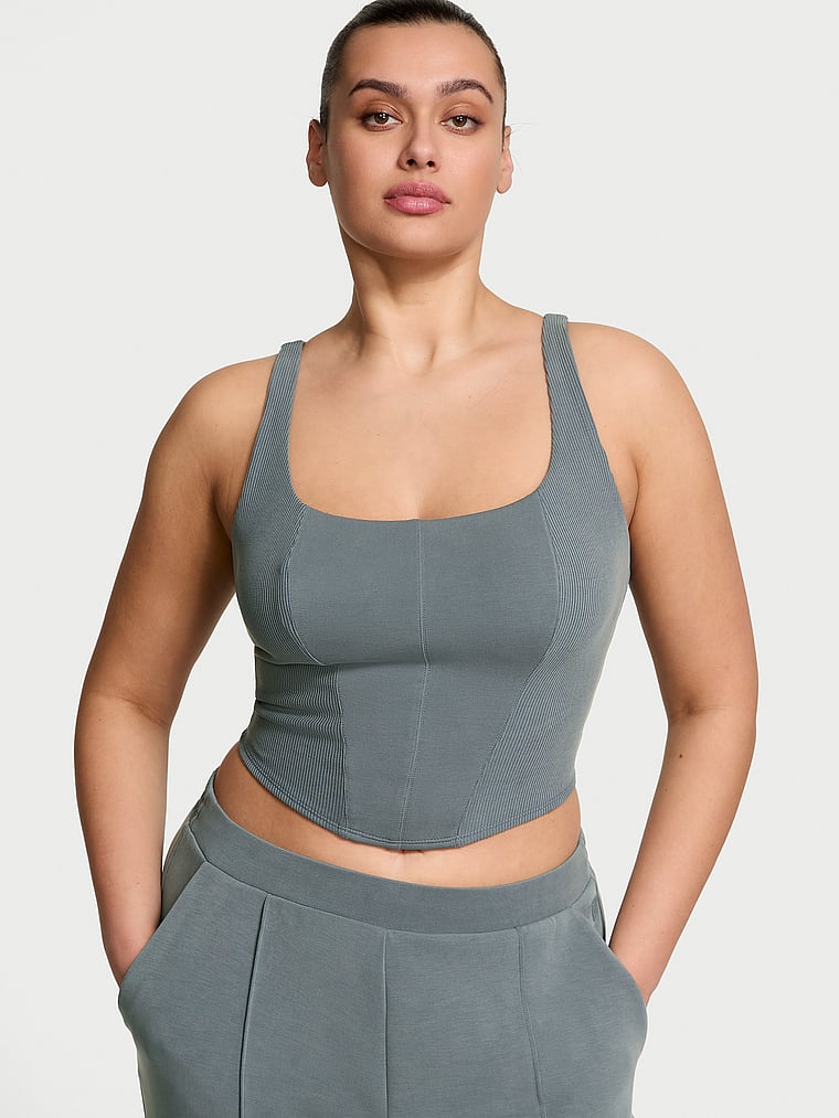 The reviews are in and everyone's loving our luxe Featherweight Knit fabric for its ultimate softness and comfort. With on-trend, corset-inspired details, this style is perfect when paired with your favorite matching bottoms.