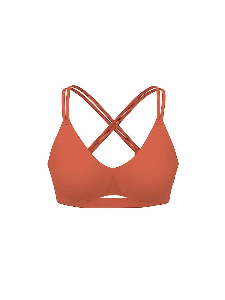Double-strap, cross-back styling and an underbust cutout detail are trendy touches to this lightly padded style. Ideal for low-impact activities, it's one you'll want to keep in your athleisure rotation.