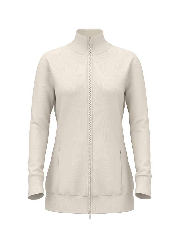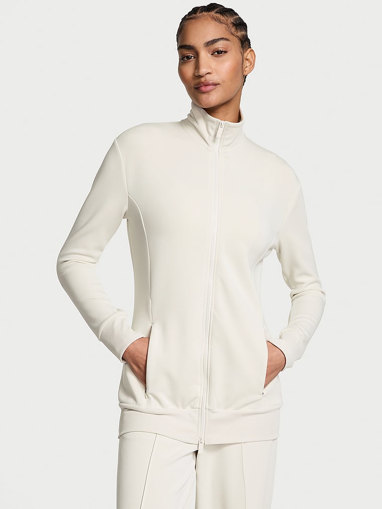 The reviews are in and everyone's loving our luxe Featherweight Knit fabric for its ultimate softness and comfort. This easygoing, zip-front style with an updated slim fit is perfect for travel or running errands. Make it a matching set with your favorite bottoms.